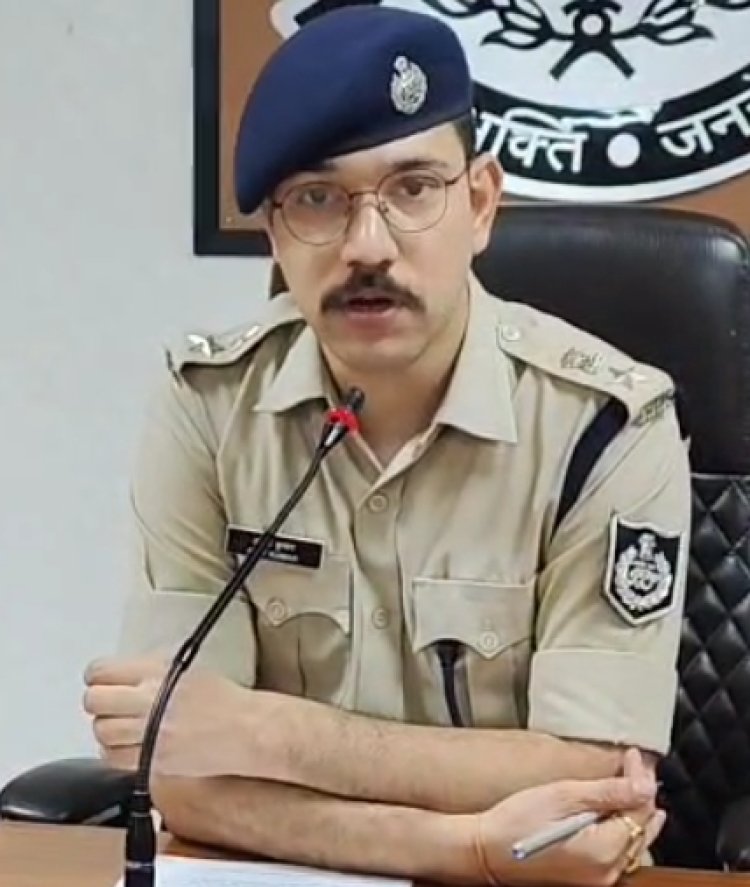 पुलिस अधीक्षक अमित कुमार पत्रकारों को जानकारी देते हुए