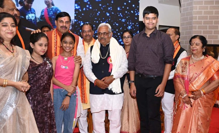 जवाहर चौधरी परिवार का अभिनंदन करते हुए मुख्यमंत्री