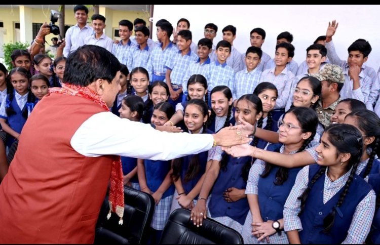 विद्यार्थियों से मिलते हुए मुख्यमंत्री