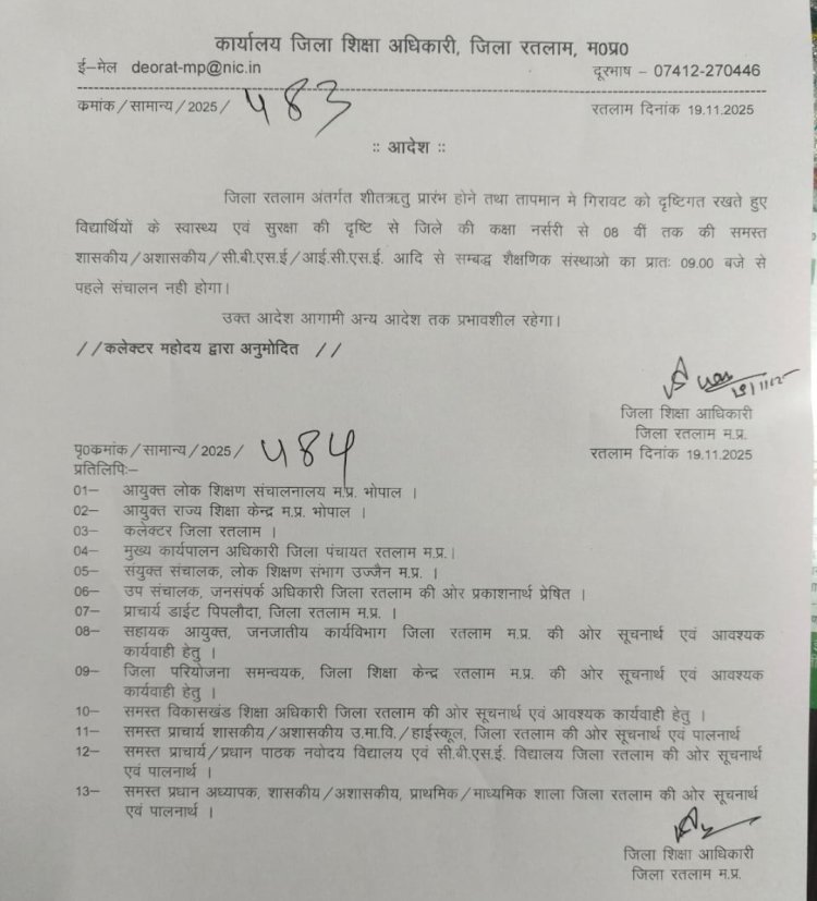 सेहत सरोकार : ठंड के मद्देनजर रतलाम जिले के स्कूलों के समय संचालन में परिवर्तन