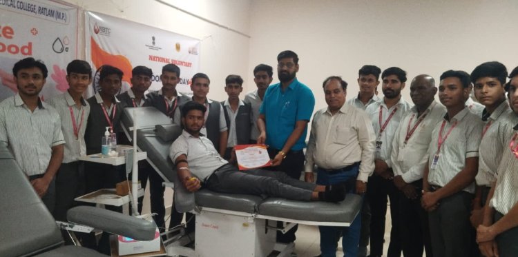 मेडिकल कॉलेज की डीन एवं सीईओ डॉ. अनीता मूथा द्वारा रक्तदाता विद्यार्थी नवीन गुर्जर को अभिनंदन पत्र प्रदान कर सम्मानित किया और उनके इस उत्कृष्ट कार्य की सराहना करते हुए विद्यार्थियों को 18 वर्ष पूर्ण होने के पश्चात रक्तदान करने का आह्वान किया।