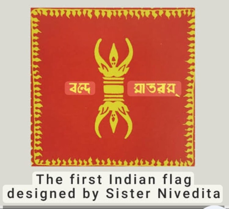 आज जब हम घर घर तिरंगा फहरा रहे हैं, उसके स्वाभिमान और गर्व का इतिहास 1857 से चला आ रहा है। जब स्वतंत्रता सेनानियों ने भारत का राष्ट्र ध्वज बनाने की योजना बनाई थी, लेकिन आंदोलन असमय ही समाप्त हो गया, तब क्रांतिकारियों ने बहादुर शाह जफर के नेतृत्व में हरे सफेद रंग के ध्वज को प्रतीक बनाया था जिसमें कमल का फूल और एक तरफ रोटी बनी हुई थी, जो क्रांति के प्रतीक थे, लेकिन प्रथम चित्रित ध्वज स्वामी विवेकानंद युग में उनकी शिष्य भगिनी निवेदिता ने 1904 में बनाया, जिसे प्रथम ध्वज कहते हैं।
