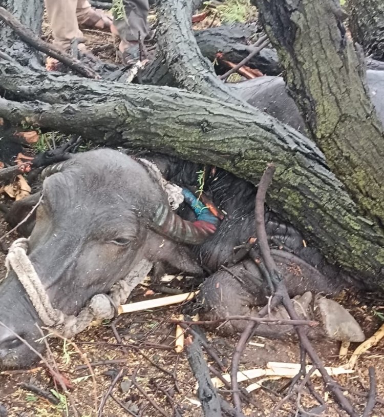 धतरावदा में पेड़ के नीचे दबने से भैंस की