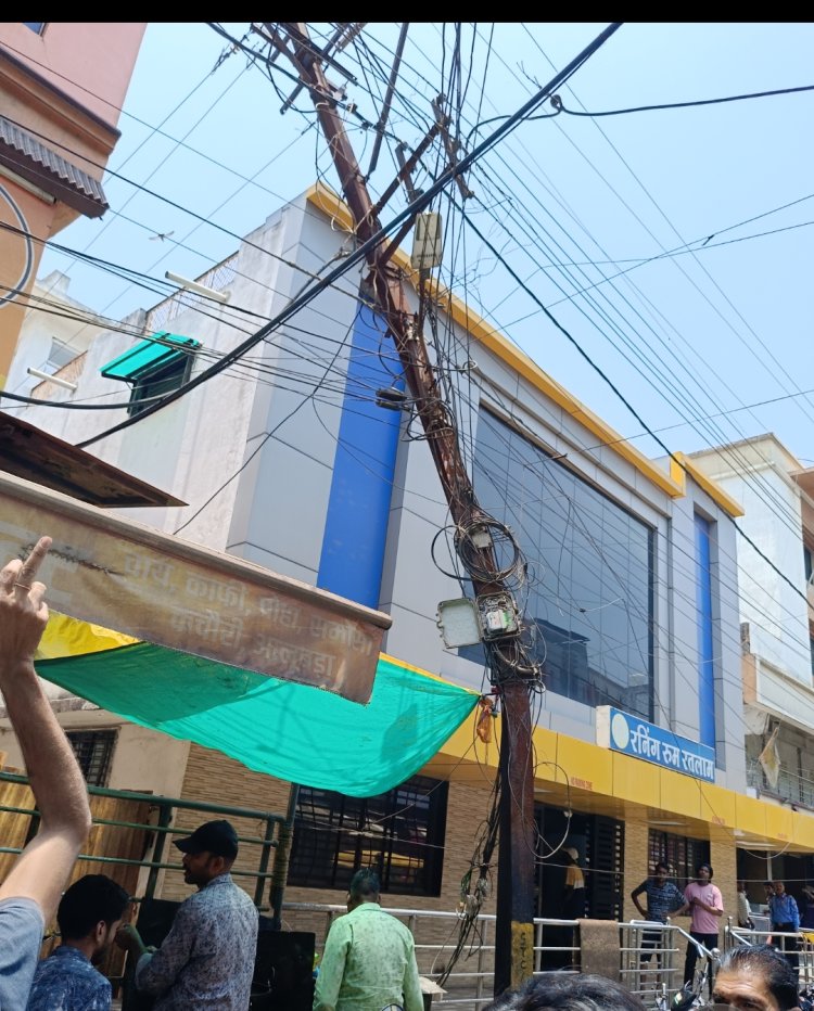 कैबिनेट मंत्री और शहर विधायक के घर के पास 12.30 बजे तेज आवाज के साथ विद्युत पोल झुक गया