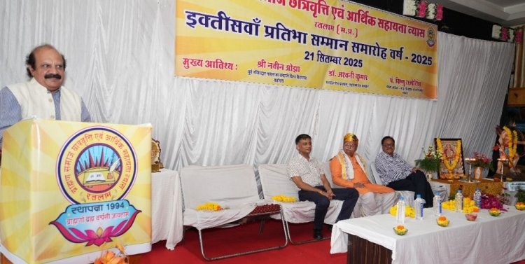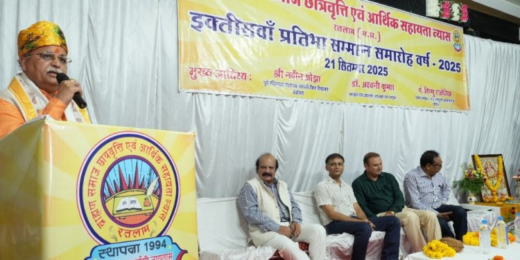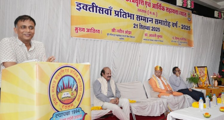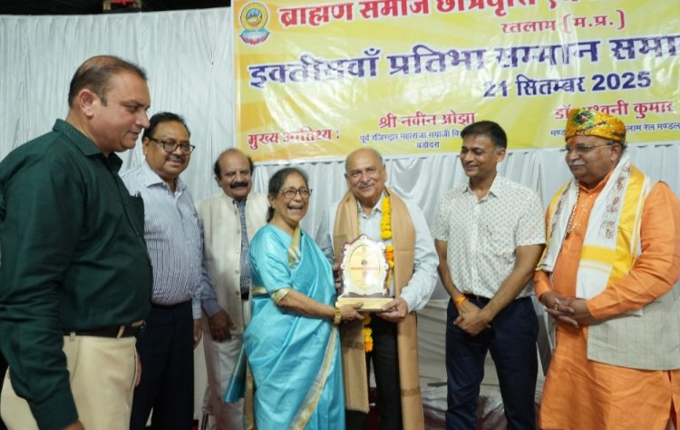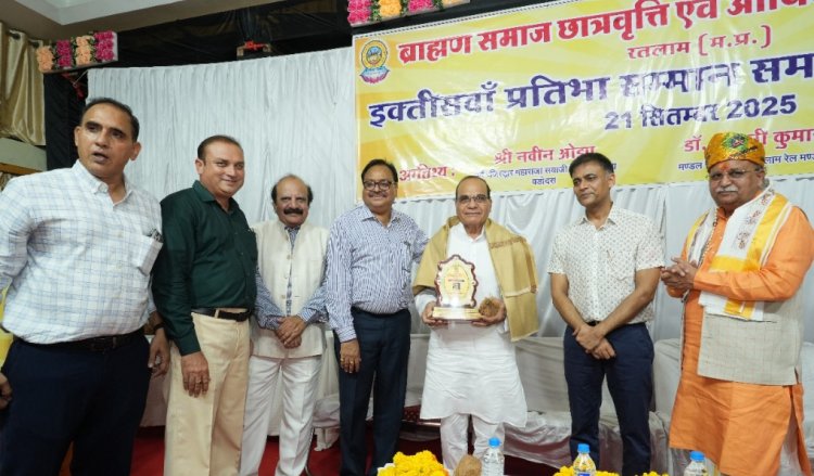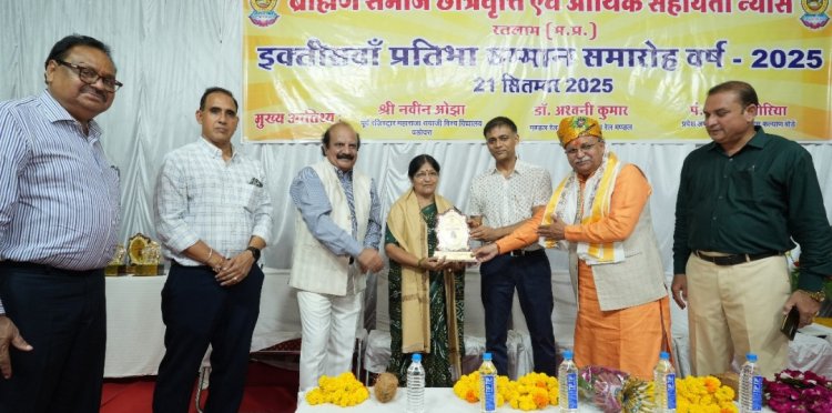 रतलाम, 22 सितंबर। ब्राह्मण समाज छात्रवृत्ति एवं आर्थिक सहायता न्यास का 31वां प्रतिभा सम्मान समारोह रविवार को संपन्न हुआ। समारोह में ब्राह्मण परिवारों की 55 से ज्यादा प्रतिभाओं और विशिष्ट व्यक्तियों को शुद्ध रजतक पदक प्रशस्ति-पत्र देकर सम्मानित किया। 40 से अधिक विद्यार्थियों को पुस्तकें क्रय करने के लिए छात्रवृत्ति भी प्रदान की। वरिष्ठ चिकित्सक डॉ. जयंत एम. सूबेदार को लाइफ टाइम अचीवमेंट अवॉर्ड से सम्मानित किया गया। अतिथियों ने ज्ञान को सबसे ताकतवर बताते हुए जीवनभर विद्यार्थी बनकर सीखते रहने की सीख दी।
