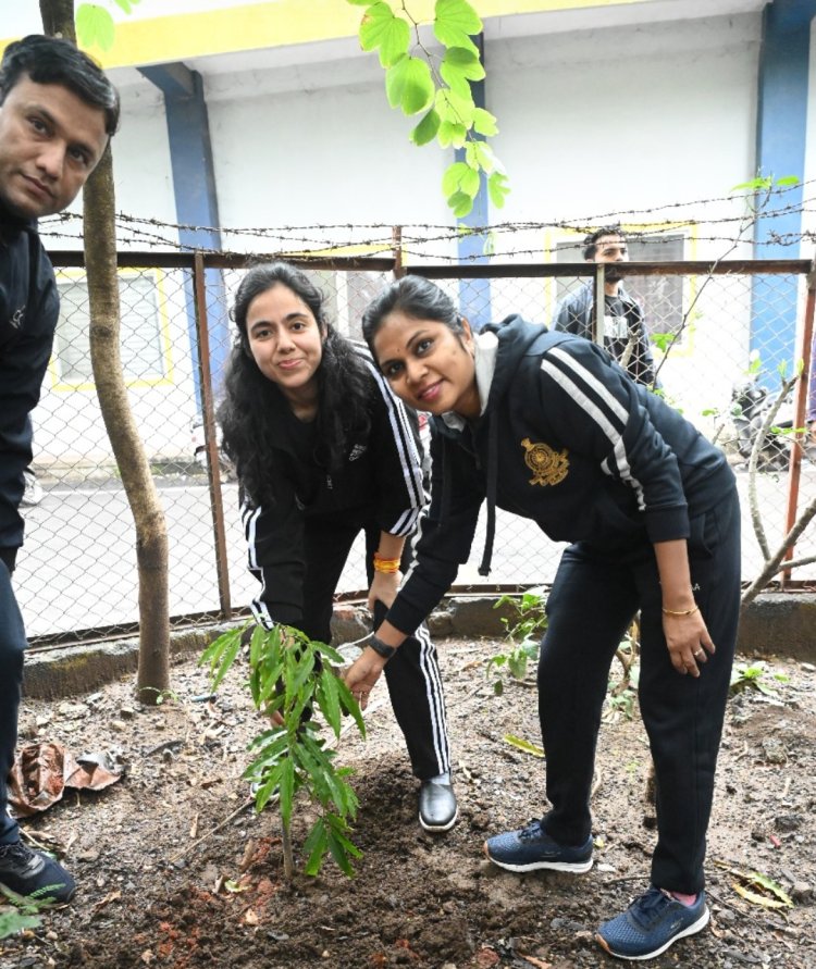 पौधारोपण के पश्चात डीआईजी पानी पिलाते हुए