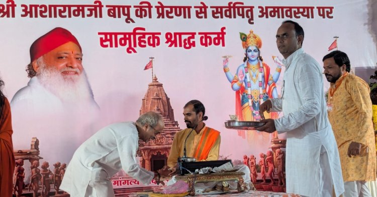 संत श्री आसाराम जी बापू की सतप्रेरणा से श्री योग वेदांत सेवा समिति,युवा सेवा संघ,महिला उत्थान मंडल एवं मांगल्य मन्दिर धर्म क्षेत्र रतलाम द्वारा संतश्री वाटिका चंपा विहार सागोद रोड पर सामूहिक श्राद्धकर्म संपन्न हुआ। मुख्य यजमान राजेश कुमावत , अधीक्षक जिला डाकघर रहे। श्राद्धकर्म एवं तर्पण की सम्पूर्ण क्रिया जगन्नाथपुरी के विद्वान ब्राहमण पंडित श्री शारदाप्रसाद मिश्रा ने संयमी ब्राह्मणों श्री शिवशंकर दुबे,पं.चेतन शर्मा एवं पं. सोमेश शर्मा के सहयोग से करवाई। जिनका समिति अध्यक्ष प्रेम प्रकाश बाथव एवं रामचंद्र चौधरी ने स्वागत किया। आयोजन समिति द्वारा सम्पूर्ण सामग्री निशुल्क उपलब्ध करवाई गई थी। कार्य्रकम के आरम्भ में पूज्य गुरुदेव की चरण पादुका को चल समारोह के साथ लोकेश परिहार परिवार द्वारा लाया गया। श्रीमती सुरेका परिहार द्वारा उनके जन्मदिन के उपलक्ष्य में जगन्नाथ पुरी से विशेष तौर से लाया गया छत्र अर्पित किया गया। चरण पादुका के दर्शन -वन्दन कर विधान की शुरुआत की गईा समाजसेवी सुरेश तंवर का 3500 से अधिक लावारिसों का अंतिम संस्कार हरिद्वार में अस्थि विसर्जन सहित सम्पूर्ण क्रिया करने पर अभिनन्दन किया गया। श्राद्धकर्ताओं को दीपावली पूजन के लिए कुबेर की पोटली सहित अन्य उपहार निशुल्क प्रदान किये गये। रतलाम जिले के अलावा मंदसौर, नीमच, धार सहित पुणे, लखनऊ,भावनगर से भी नागरिक ने श्राद्ध करने आये थे।