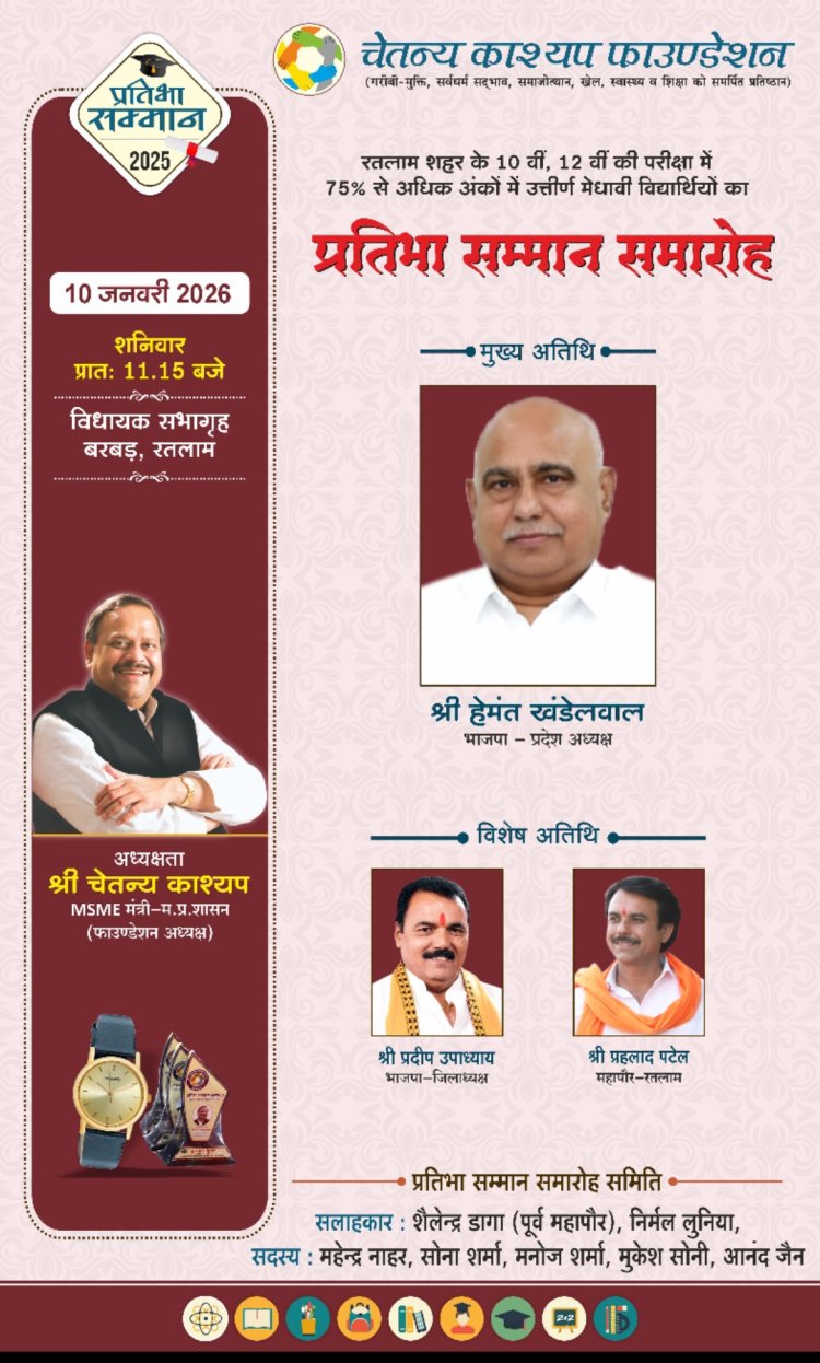 प्रदेश अध्यक्ष श्री खंडेलवाल एक दिवसीय प्रवास के दौरान प्रातः 11:30 बजे 1:15 तक विधायक सभागृह मे चेतन्य काश्यप फाउंडेशन द्वारा आयोजित प्रतिभा सम्मान समारोह द्वारा मे शामिल होगे। तत्पश्चात भाजपा के बूथ अध्यक्ष के निवास पर भोजन करने जाएंगे। दोपहर 02:15 बजे मे सैलाना रोड स्थित अतिथि गार्डन मे पत्रकार वार्ता को संबोधित करेगे। तत्पश्चात अतिथि गार्डन मे दोपहर 03:00 बजे भाजपा जिला बैठक, दोपहर 04:15 बजे VB-G-RAM-G जनजागरण अभियान बैठक एवं शाम 07 बजे सोशलमीडिया, आई.टी.टीम एवं मन की बात टोली की बैठक को संबोधित करेगे।