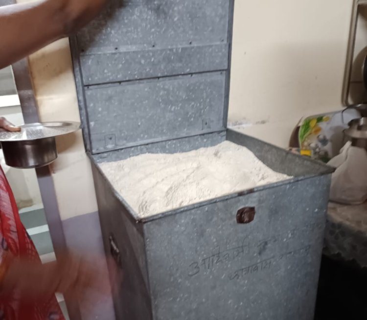 ⚫ निरीक्षण में पाया रसोई घर की कोठियों में मिले पोहे, आटा, बरनियों में दालें सहित अन्य