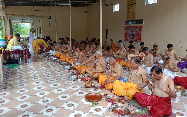 ⚫ सर्व ब्राह्मण समाज के बैनर तले श्री नागेश्वर एकलिंग नाथ महादेव मंदिर गंगा आश्रम पर हुआ श्रावणी उपाकर्म
