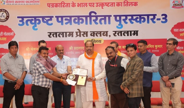 ⚫ रतलाम प्रेस क्लब द्वारा तीसरे पुरस्कार वितरण समारोह का भव्य आयोजन