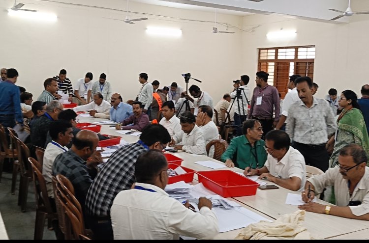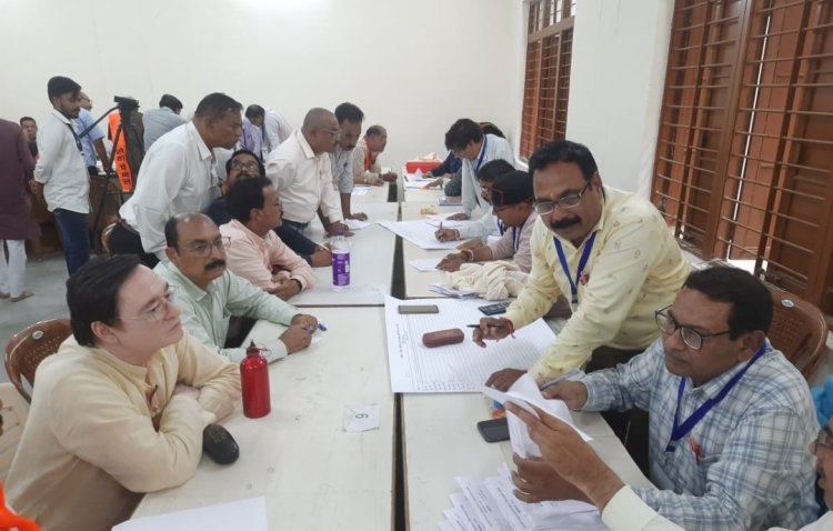 मतगणना करते हुए शिक्षक कर्मचारी