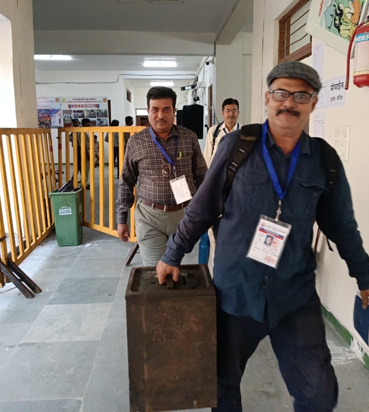 मतगणना के बाद मतपेटी जमा करवाने जाते हुए शिक्षक कर्मचारी