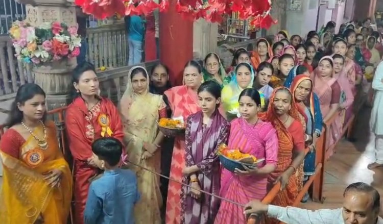 माताजी के दर्शन के लिए कतार में मातृशक्ति